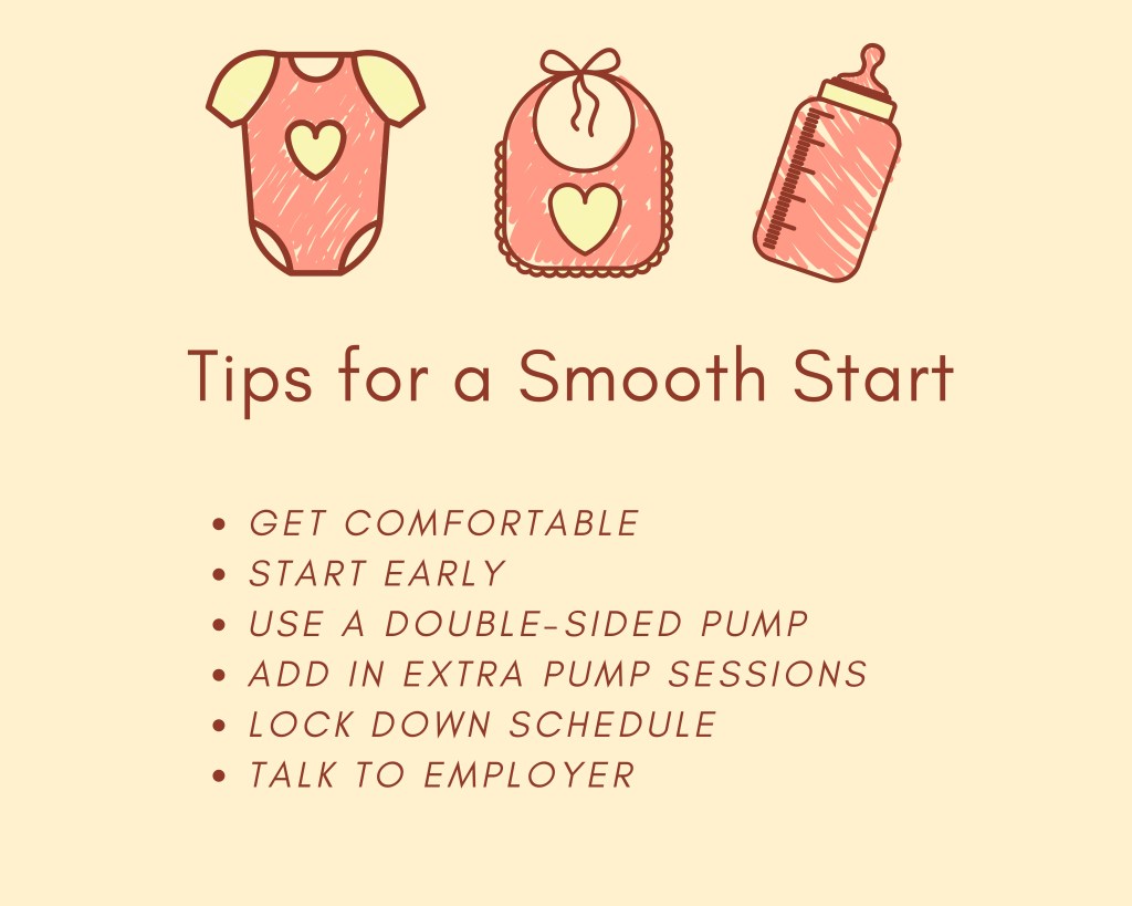 - Try to add in extra pump sessions before you return to work to build up your milk supply.